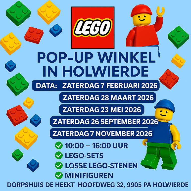 Welkom bij onze Brick Pop-up winkel in het gezellige dorpshuis de Heekt in Holwierde. Deze regelmatig terugkerende winkel is de plek voor iedereen die van bouwen houdt.